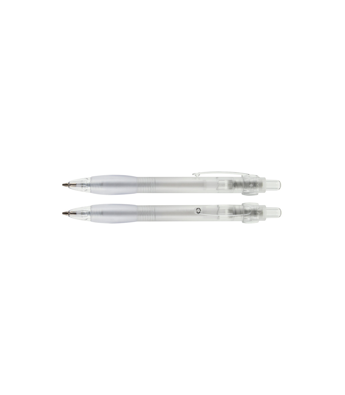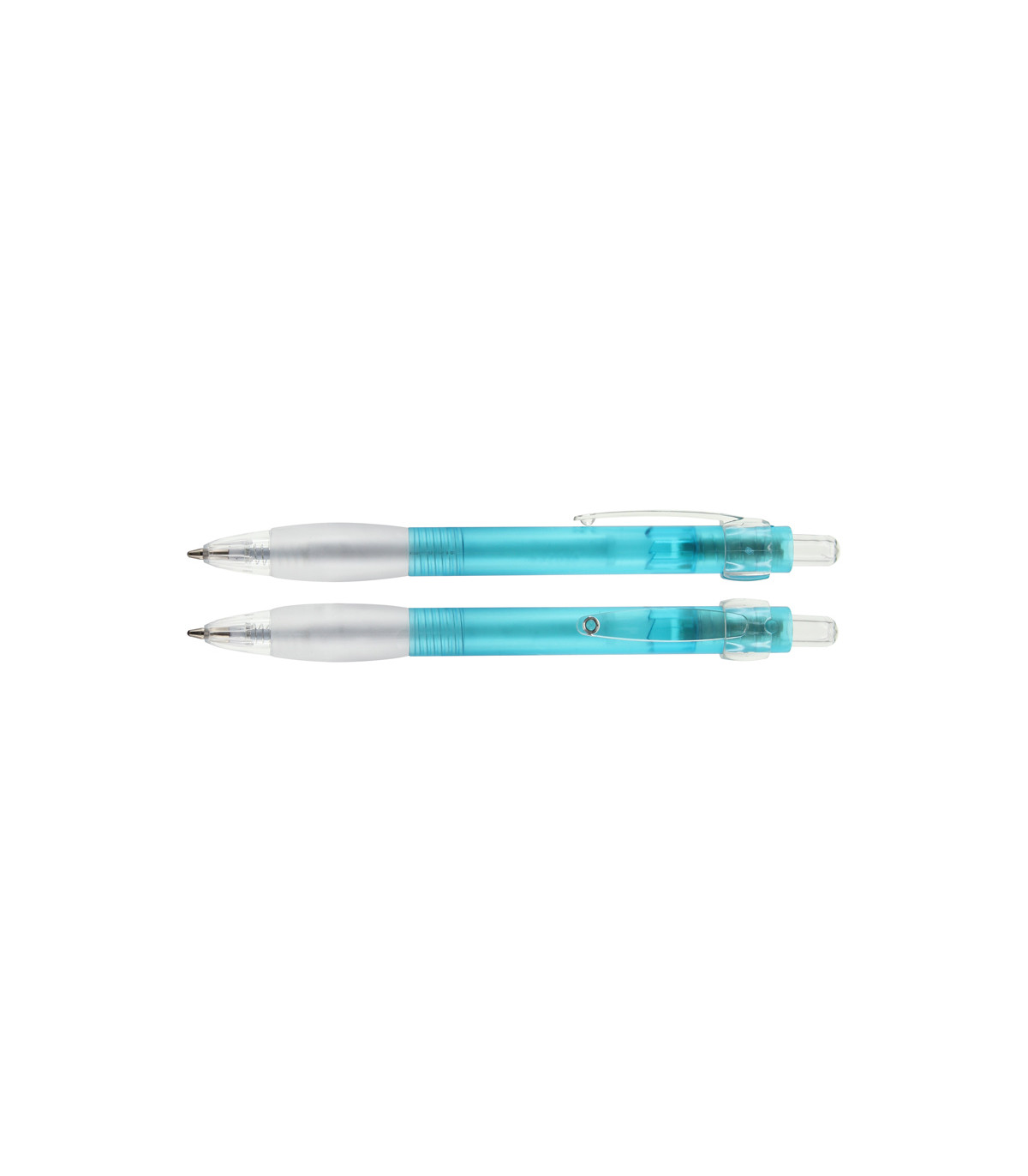 Bolígrafo plástico color frozen modelo "Evolution" con clip metálico con orificios. Escritura azul. Tamaño: 14 x Ø 1.1 cm. Colores: Blanco (01), Azul (02), Rojo (03), Naranjo (04), Amarillo (05), Verde (06), Plata...