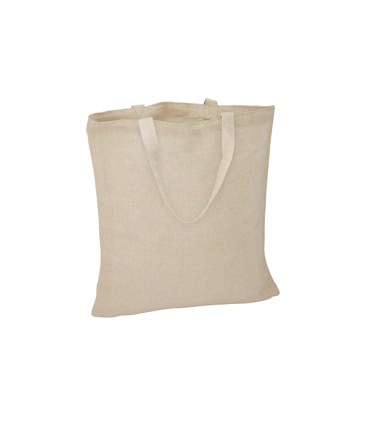 Bolsa de Yute modelo "Orinoco" con manillas de Algodón. Tamaño: 58 x 40 x 20 cm. Colores: Natural (11). Sugerencia de Impresión: Serigrafía en Pulpo Automático. Material: Yute natural.
