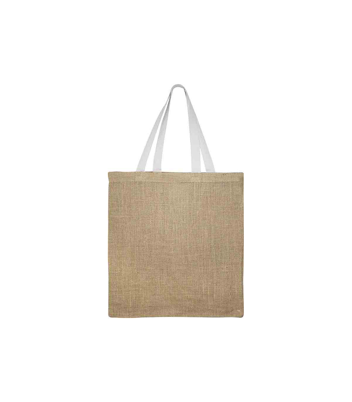 Bolsa de Yuco modelo "Calcuta". 50% Yute / 50% Algodón. Tamaño: 38 x 40 cm. Colores: Natural (11). Sugerencia de Impresión: Serigrafía en Pulpo Automático. Material: 50% Yute / 50% Algodón.