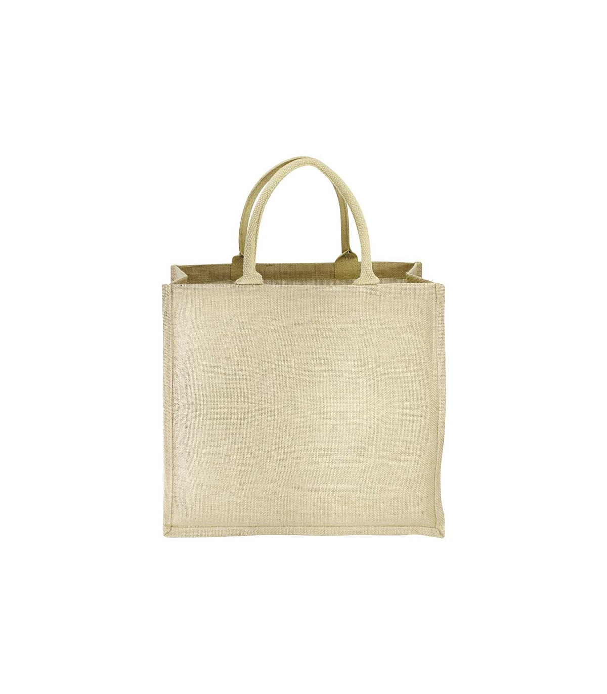 Bolsa de Yuco modelo "Calcuta". 50% Yute / 50% Algodón. Tamaño: 38 x 40 cm. Colores: Natural (11). Sugerencia de Impresión: Serigrafía en Pulpo Automático. Material: 50% Yute / 50% Algodón.