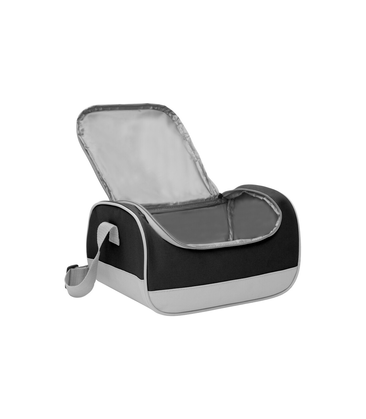 34 x 25 x 19 cm. Capacidad 16l. Polyester 600D. Bolso térmico. Interior totalmente recubierto de aluminio. Bolsillo frontal, correa extensible y cierres metálicos con tira cierres de cordón.