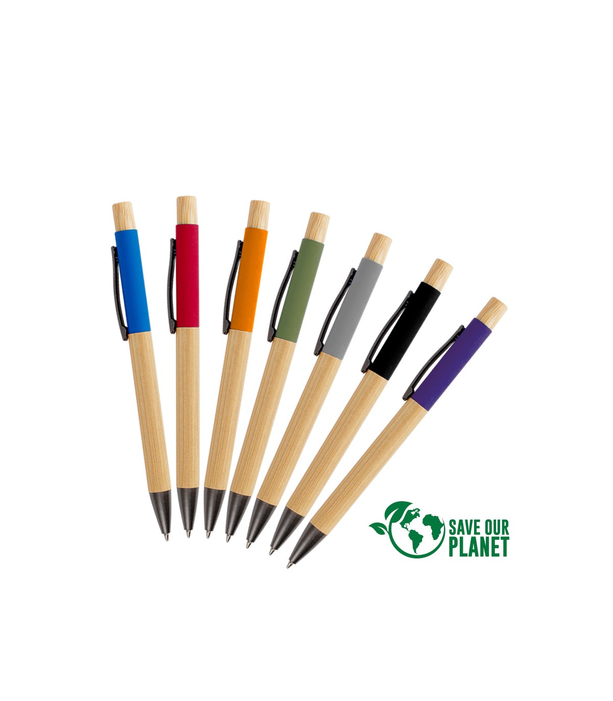 Bolígrafo Ejecutivo de Madera de Bambú, modelo "Enviro". Escritura negra. • Tamaño: 14 x Ø 1.1 cm. • Colores: Madera (12). • Sugerencia de Impresión: Serigrafía, Grabado Láser.