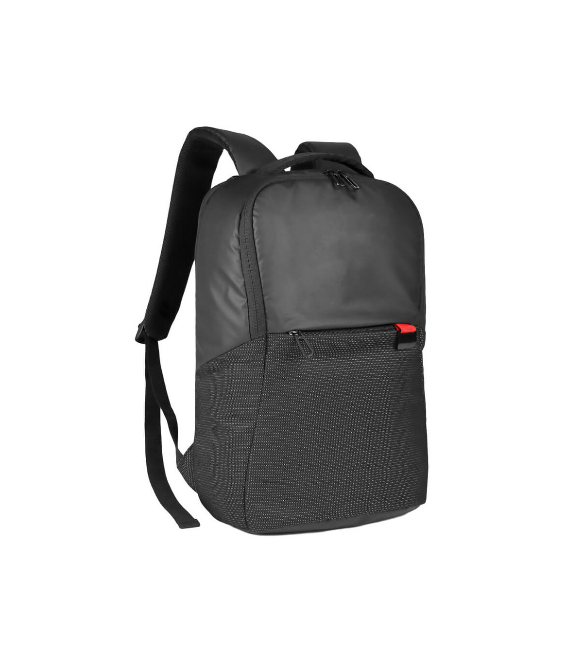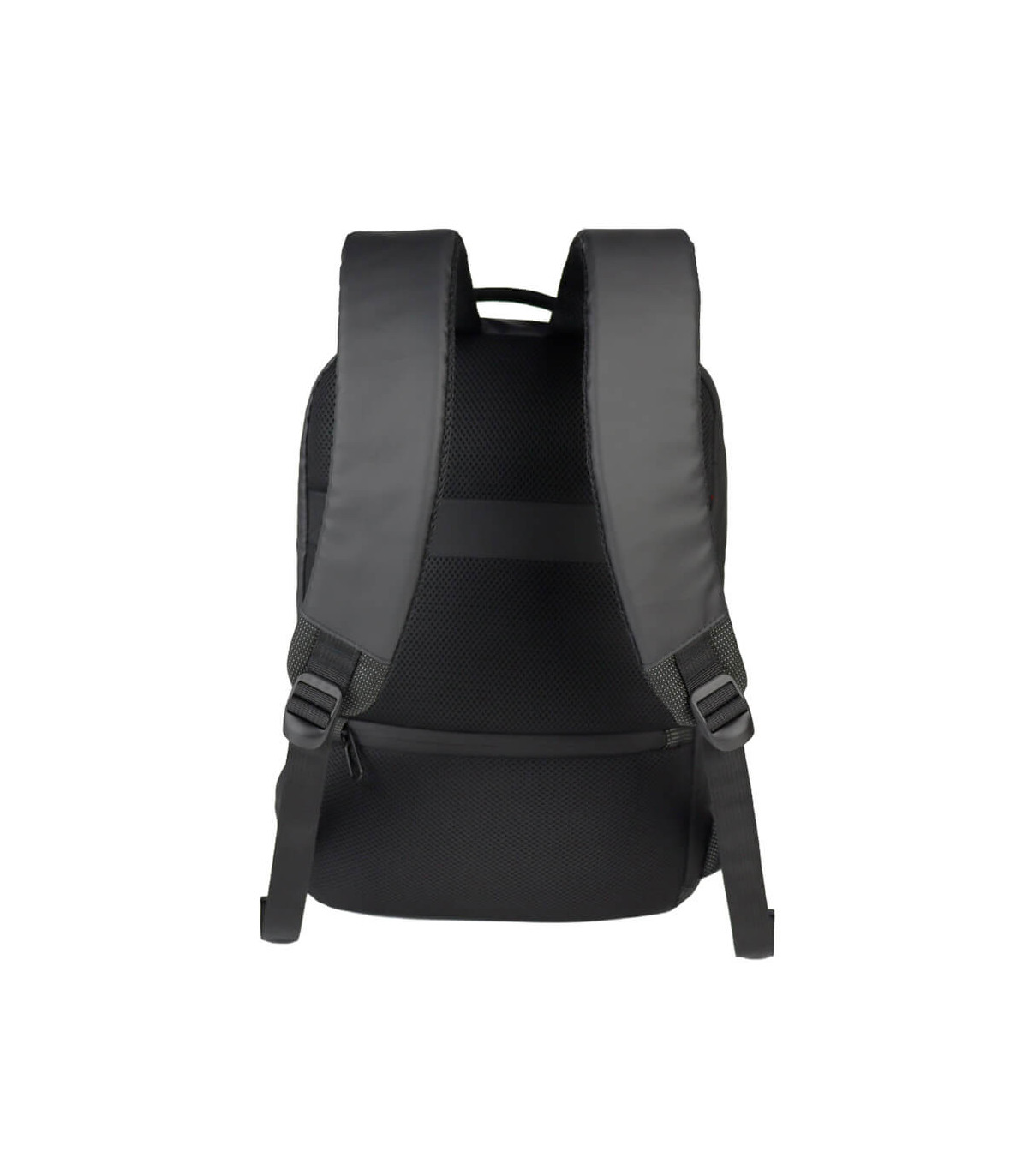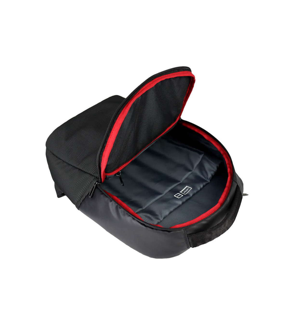 Deluxe Mochila Porta-Notebook modelo Ancud. En tela poliéster mallado con membrana epitelial + eco-cuero PU 840D. Capacidad 16 litros, tamaño 30 x 44 x 12 cm. Cuenta con compartimiento delantero para notebook y tablet, + bolsillo delantero + compartimento principal con apertura posterior lateral (en vertical) de seguridad, para acceso directo a la notebook. Sujetador de Carry-on. Espaldar y correas regulables acolchados, y un cuarto compartimento (bolsillo) en el espaldar, para guardar elementos pequeños con máxima seguridad anti-robos.