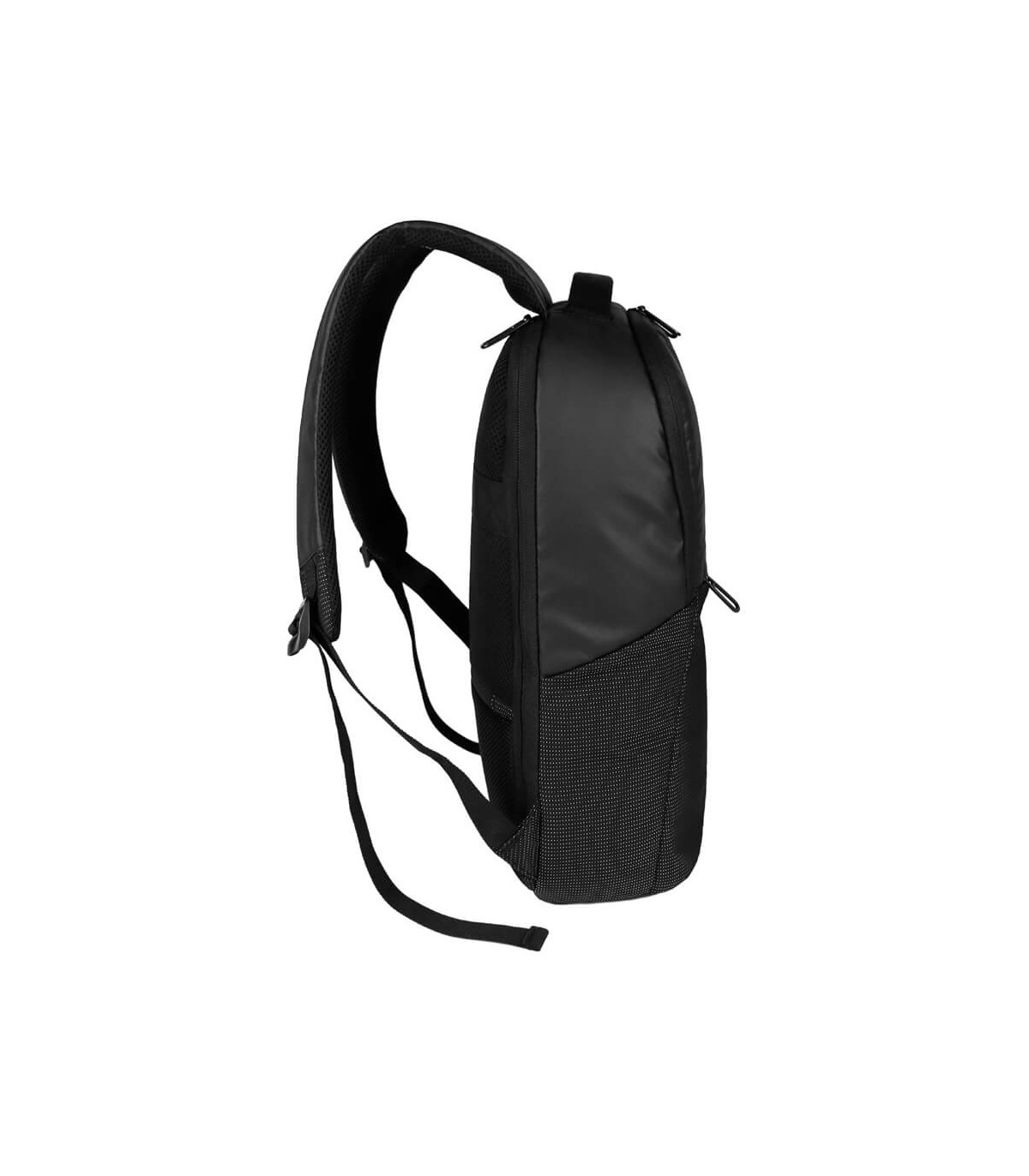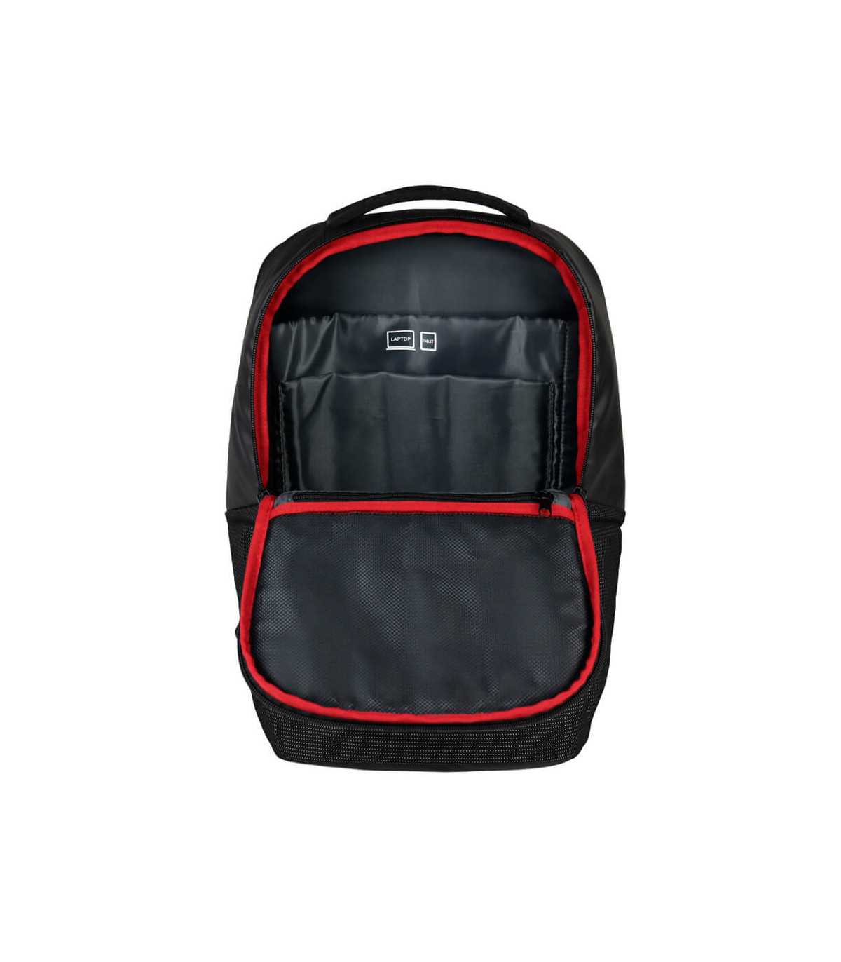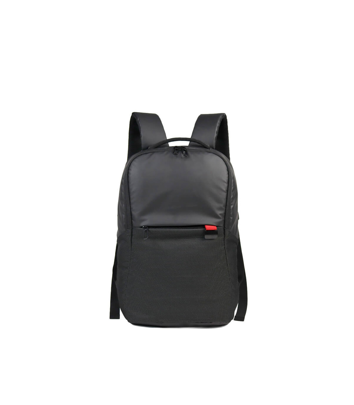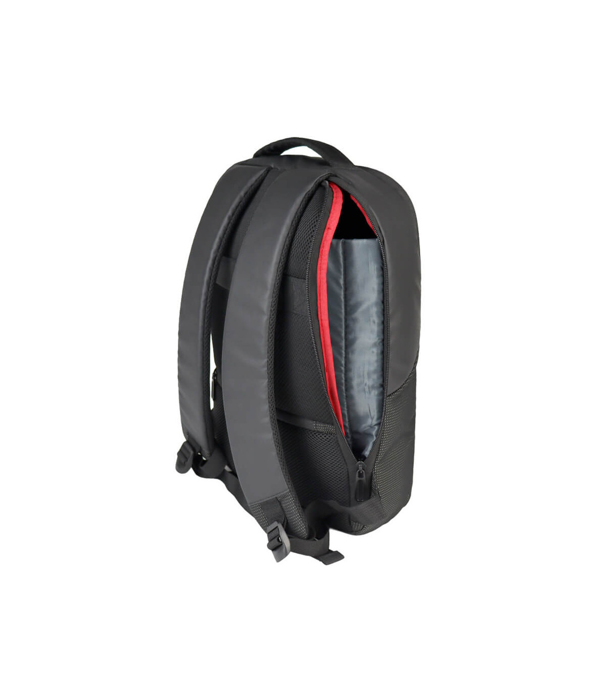 Deluxe Mochila Porta-Notebook modelo Ancud. En tela poliéster mallado con membrana epitelial + eco-cuero PU 840D. Capacidad 16 litros, tamaño 30 x 44 x 12 cm. Cuenta con compartimiento delantero para notebook y tablet, + bolsillo delantero + compartimento principal con apertura posterior lateral (en vertical) de seguridad, para acceso directo a la notebook. Sujetador de Carry-on. Espaldar y correas regulables acolchados, y un cuarto compartimento (bolsillo) en el espaldar, para guardar elementos pequeños con máxima seguridad anti-robos.