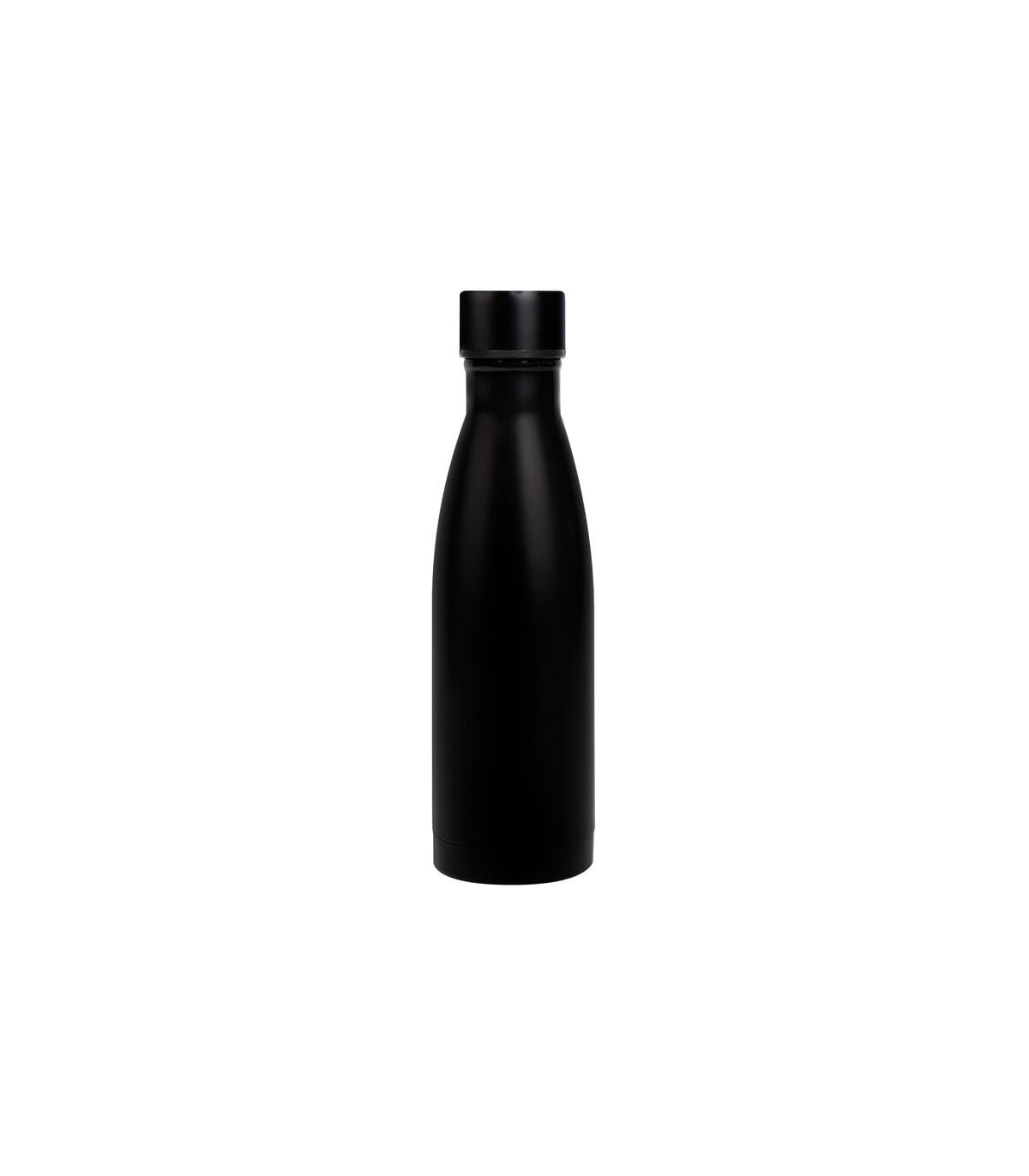 Ø 6,6 x 24,5 cm. Capacidad 500 ml. Acero inoxidable. Botella doble pared, sellada al vacío con recubrimiento de cobre. Interior de acero 304 y exterior de acero 201. Pintura color negro mate. Tapa de acero a rosca....