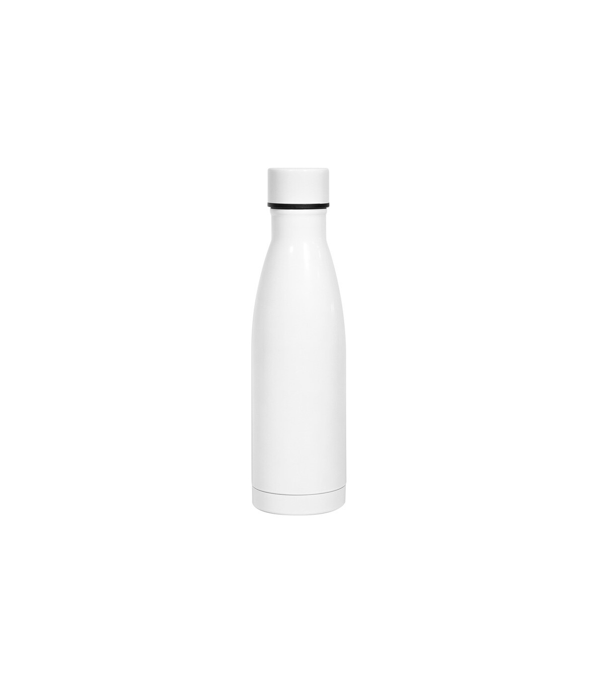 Ø 7 cm x 23 cm. Acero inoxidable. Capacidad 450 ml. Botella doble pared, sellada al vacío. Interior de acero 304 y exterior de acero 201. Pintura color blanco brillante apta para sublimado. Tapa en PP con traba de...