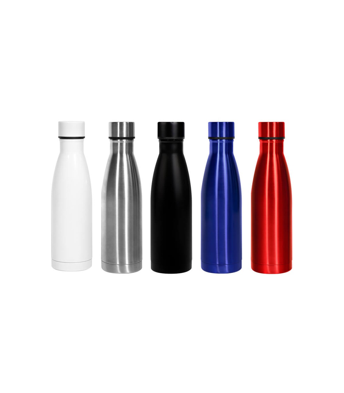 Ø 7 x 25,5 cm. Capacidad 500 ml. Acero inoxidable. Botella doble pared, sellada al vacío. Interior de acero 304 y exterior de acero 201. Cuerpo y tapa a rosca del mismo color. Mantiene hasta 12 hs la temperatura de las bebidas calientes y 24 hs de las bebidas frías. Presentación en caja de regalo.