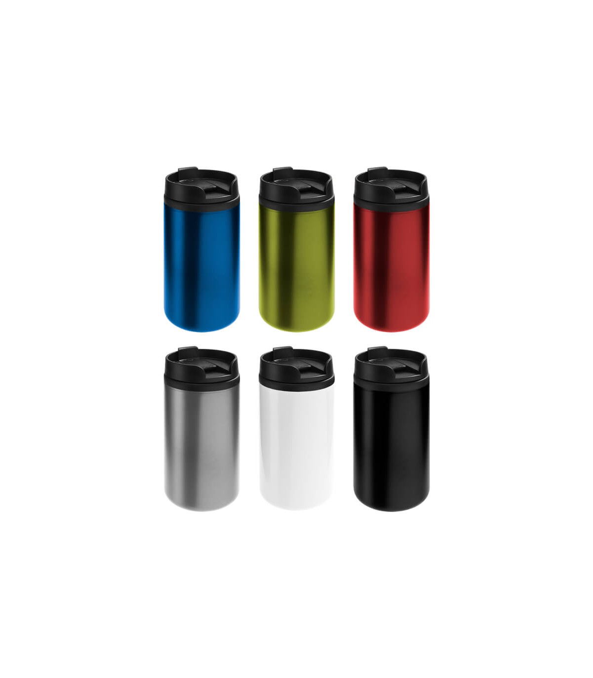Mug térmico metálico doble pared aislante, cubierta de Polipropileno (PP) acabado mate, interior Acero inoxidable 304 SS, exterior Acero inoxidable 201 SS, modelo «MID». Producto BPA FREE, para el contacto con...